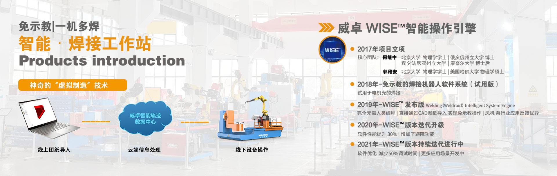 立即咨詢 現(xiàn)在聯(lián)系我們:0510-85384033無錫威卓智能機器人有限公司成立于2017年,是無錫市政府引進的科技領(lǐng)軍型高新技術(shù)企業(yè),公司研發(fā)團隊80余人,我們堅持自主創(chuàng)新,利用自主開發(fā)的虛擬制造技術(shù)對傳統(tǒng)焊接行業(yè)進行升級改造。 公司主推的工業(yè)風機系列-智能焊接工作站產(chǎn)品,具有免示教、實時跟蹤、簡易工裝、傻瓜式操作等優(yōu)點,真正幫助企業(yè)解決了招焊工難,用工成本高,焊接質(zhì)量不穩(wěn)定等問題。